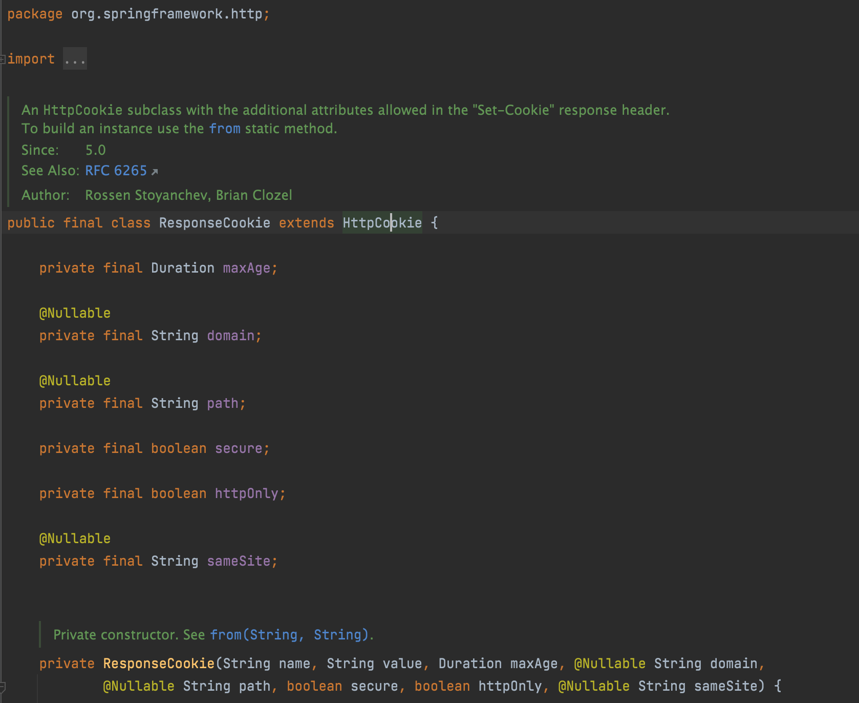 이와 반대로 ResponseCookie 에는 이미 sameSite 옵션도 정의되어 있었습니다.