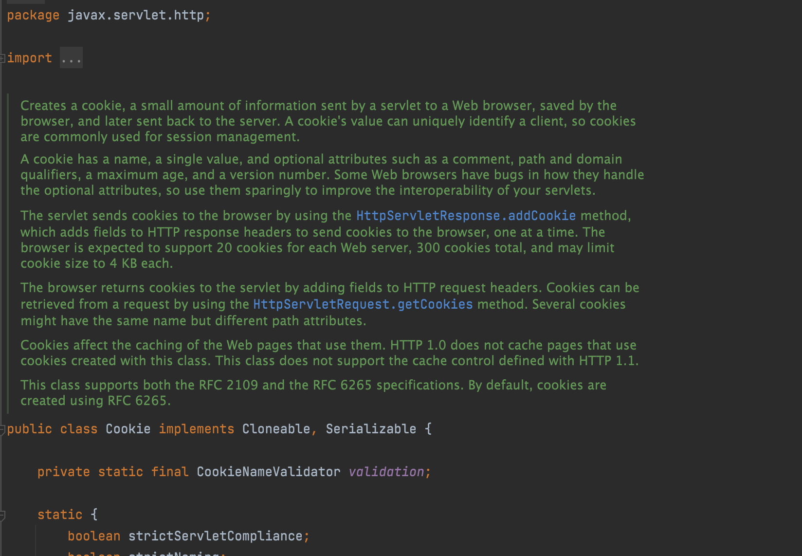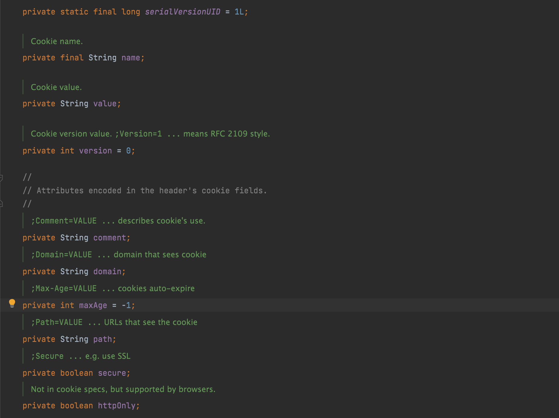위의 사진처럼 javax.servlet.http 에서 제공하는 Cookie 객체에는 same site 값에 대한 필드가 정의되어 있지 않습니다.