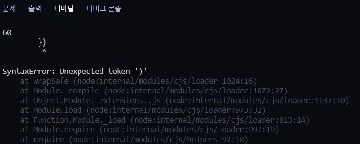 익숙한 오류. 괄호를 똑바로 안 닫아서 나는 오류다.