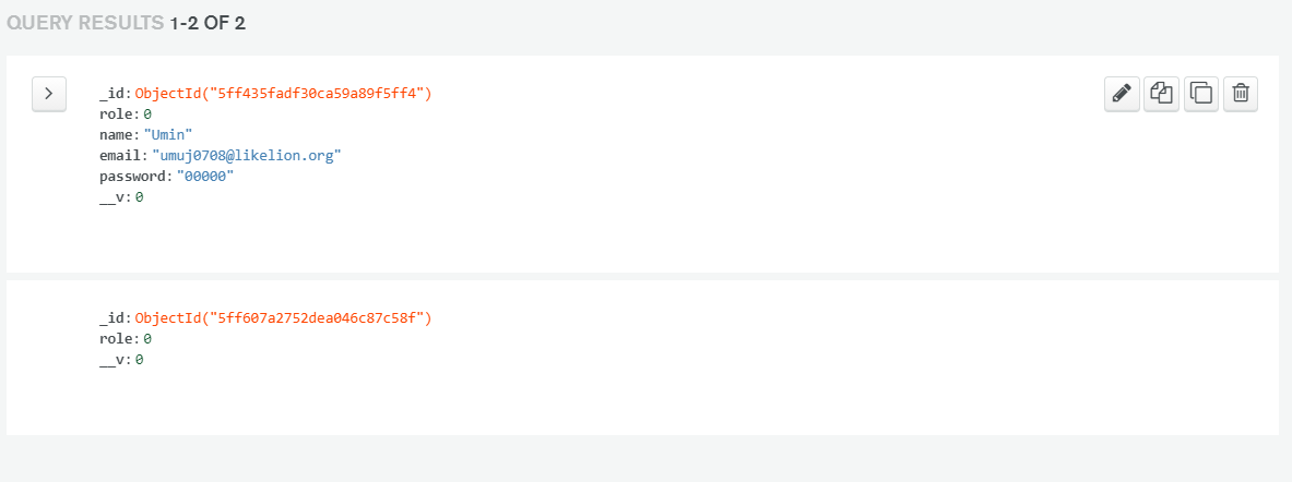 서버랑 포스트맨만 켰다 껐다 했더니 갑자기 리퀘스트가 되더니 유저가 등록되었다.
