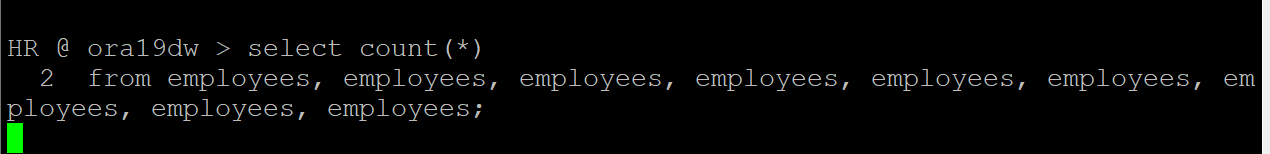 HR @ ora19dw > select count(*)