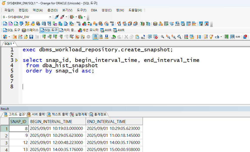 exec dbms_workload_repository.create_snapshot;