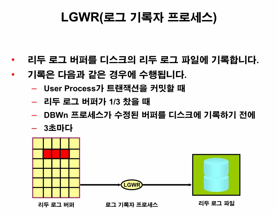 - checkpoint 이벤트 (메모리의 내용을 database에 일괄적용)