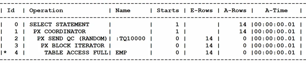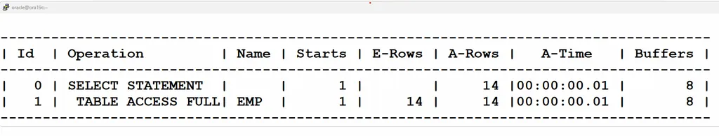 SELECT * FROM table(dbms_xplan.display_cursor(null, null, 'ALLSTATS LAST'));