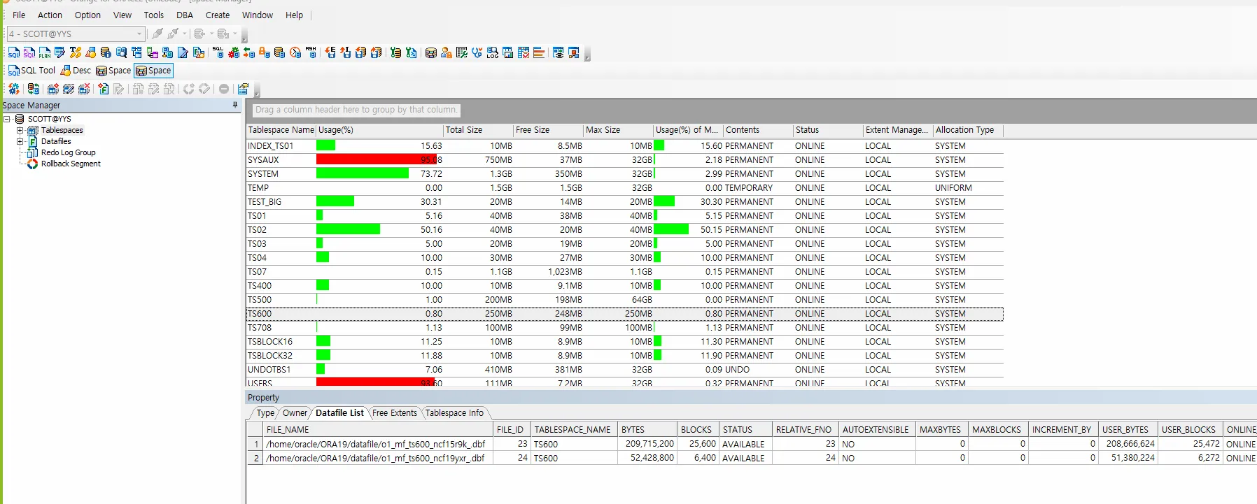 --> ์๋๋ drop tablespace ts600 including contents and datafiles;