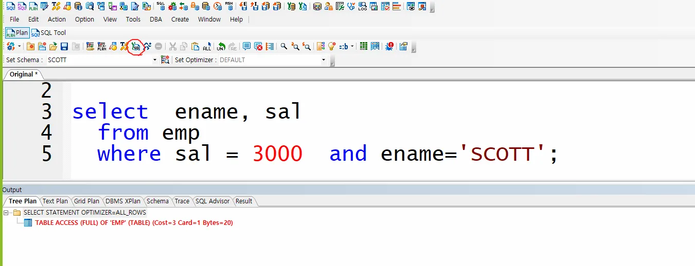 1 - access("ENAME"='SCOTT' AND "SAL"=3000)