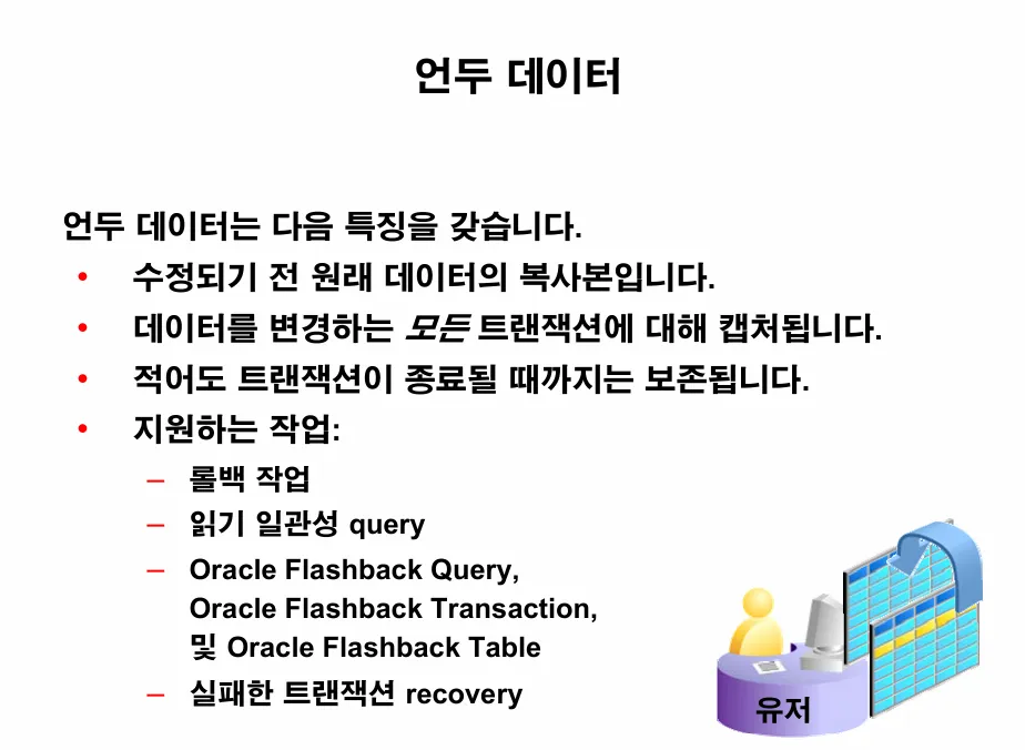 💡 undo segment에 undo data가 저장되어있어서 flashback이 가능한 것
