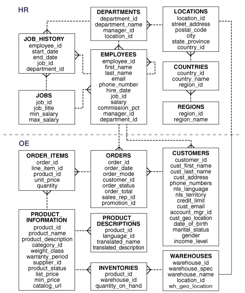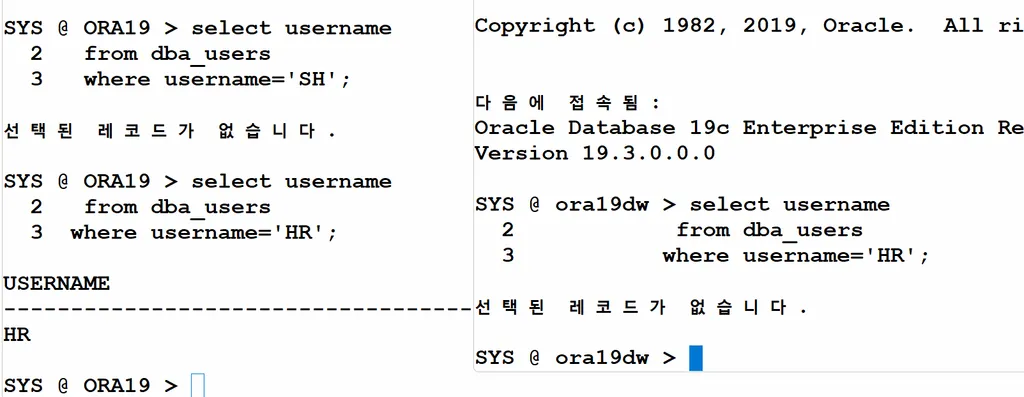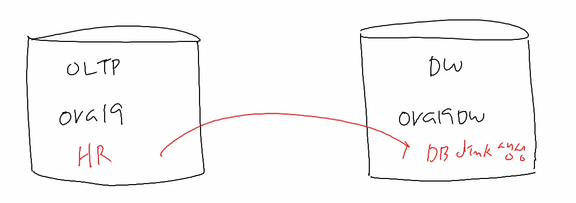 아래의 hr 계정이 가지고 있는 테이블과 인덱스와 제약과 여러 다른 object들을 깔끔하게 ora19dw 쪽으로 데이터 이행하려면 db링크를 생성해야합니다.