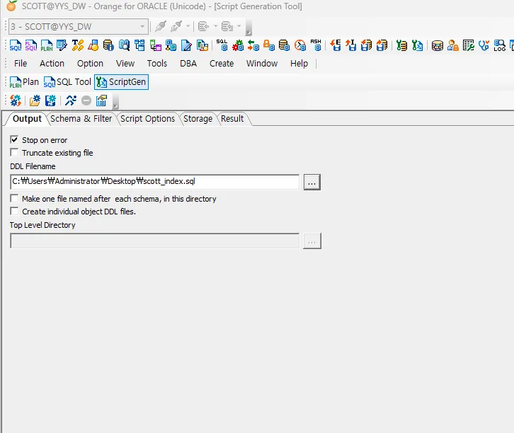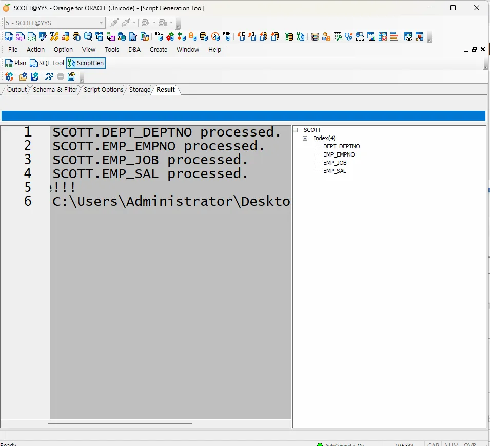 ㄴ SCOTT 체크, Index 체크하고 달리기 버튼(스크립트 생성) 클릭