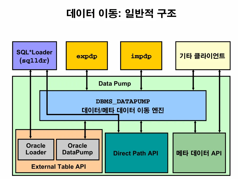 : 단순하고 빠르게 데이터를 이행할 때 사용- export / import pump