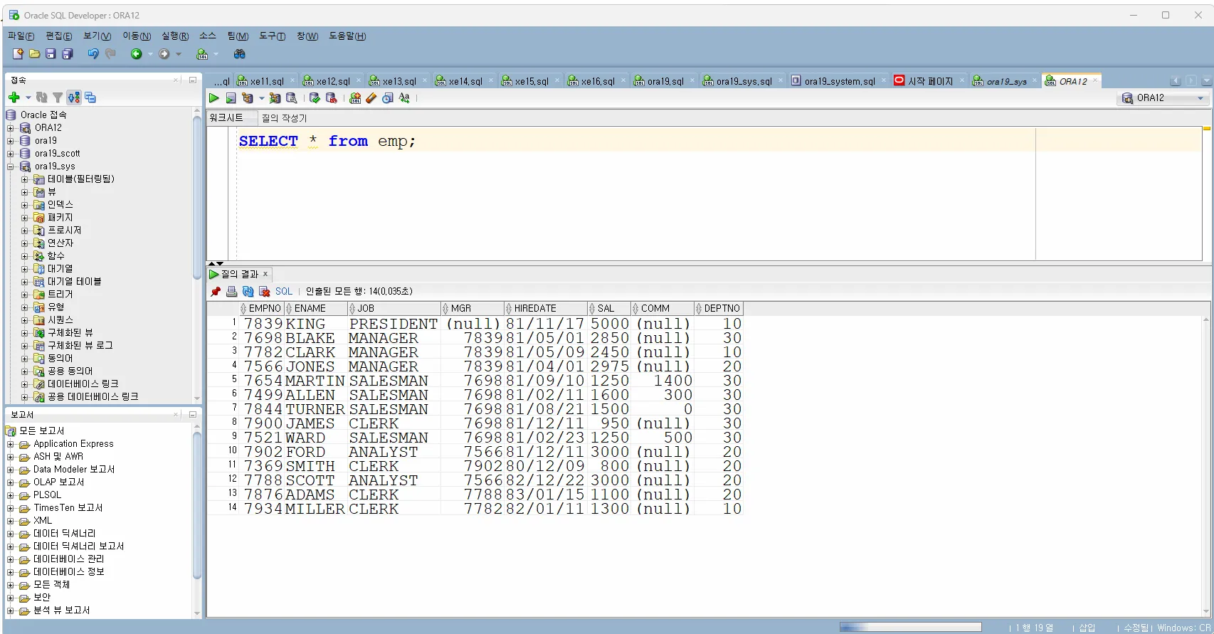 (DESCRIPTION=(ADDRESS=(PROTOCOL=TCP)(HOST=192.168.13.131)(PORT=1521)))에 연결되었습니다