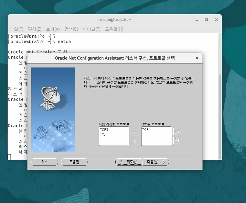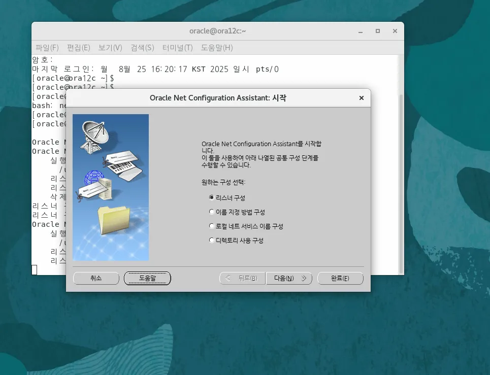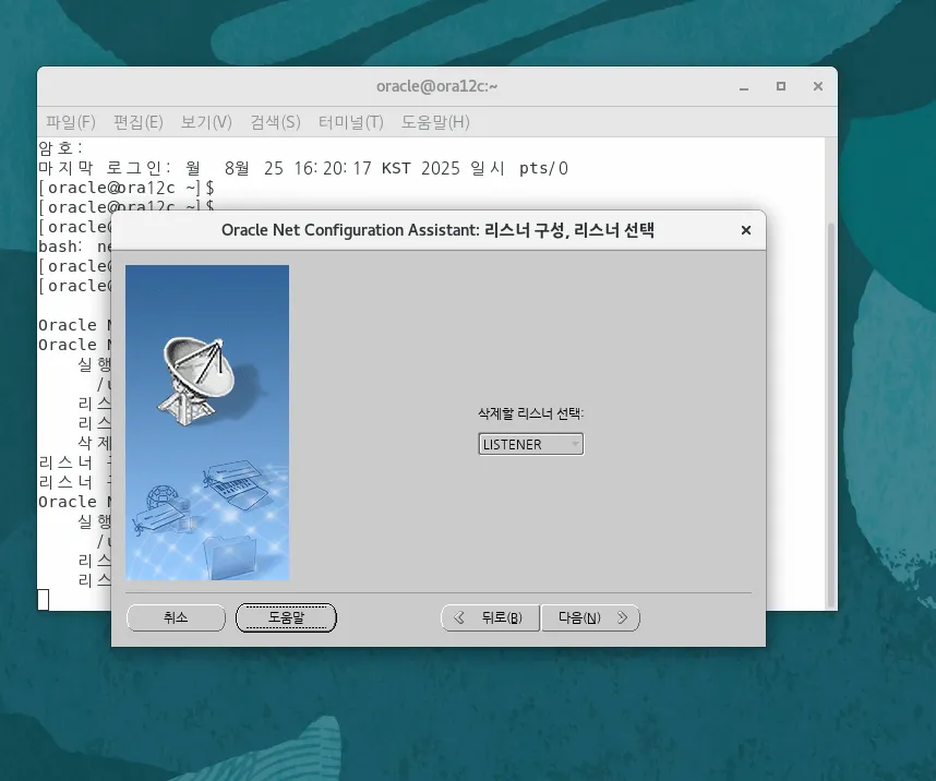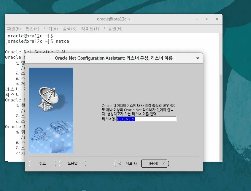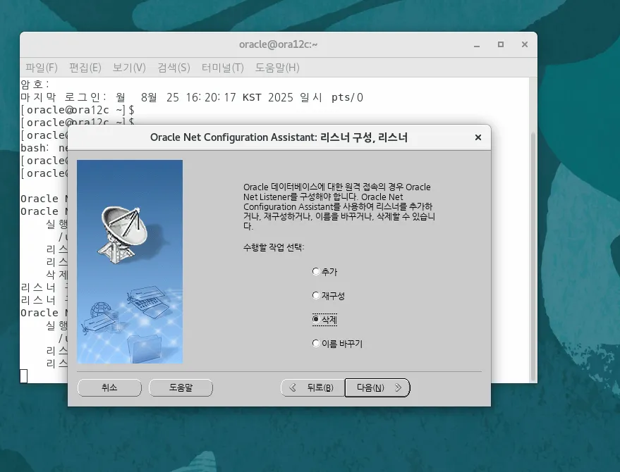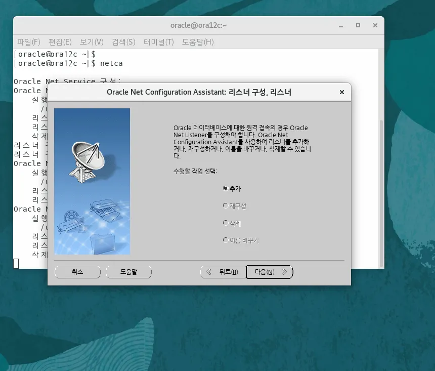 리눅스 서버에서 직접 netca를 실행하고 기존 리스너를 지우고 새로운 리스너를 생성합니다.