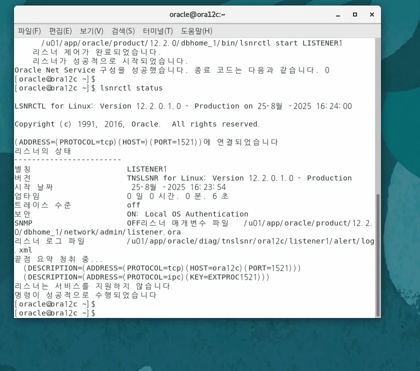 LSNRCTL for Linux: Version 12.2.0.1.0 - Production on 25-8월 -2025 16:30:36