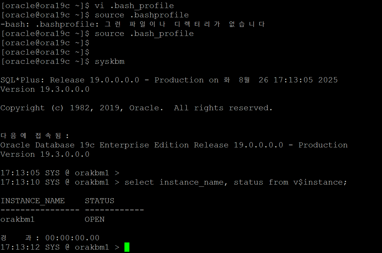 SQL*Plus: Release 19.0.0.0.0 - Production on 화 8월 26 17:13:05 2025