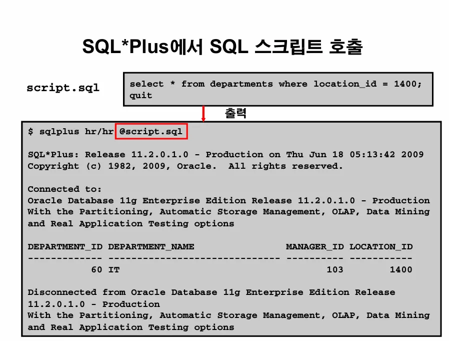 [oracle@ora19c ~]$ sqlplus hr/hr @script.sql