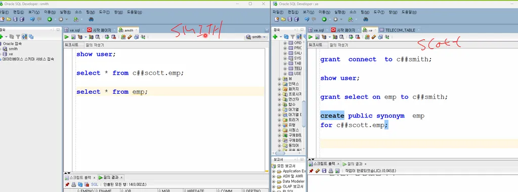 -- synonym 만들기 전이라 c##scott.emp라고 꼭 써줘야됨