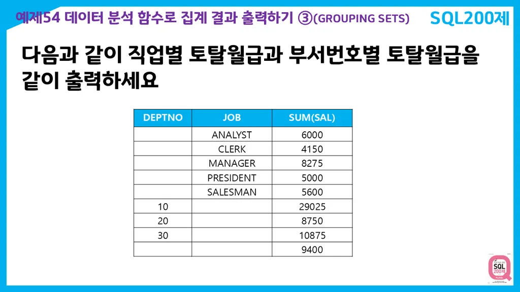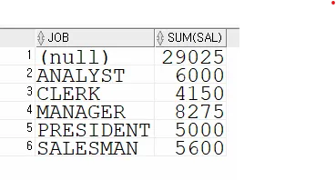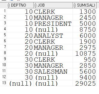 group by grouping sets((job), ()); -- job에 괄호 안써도 됨