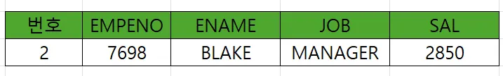 select rownum 번호, empno, ename, job, sal