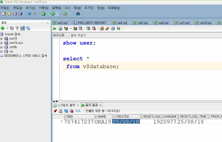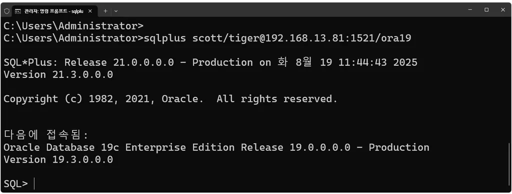 SQL*Plus: Release 19.0.0.0.0 - Production on 월 8월 18 20:19:01 2025