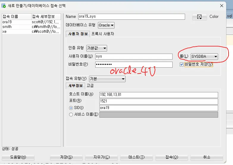 💡 lsnrctl status 로 리스너의 상태를 확인했을 때 위와 같이 서비스가 보이면 클라이언트에서 sql developer 로 접속을 할 수 있는 상태인 것