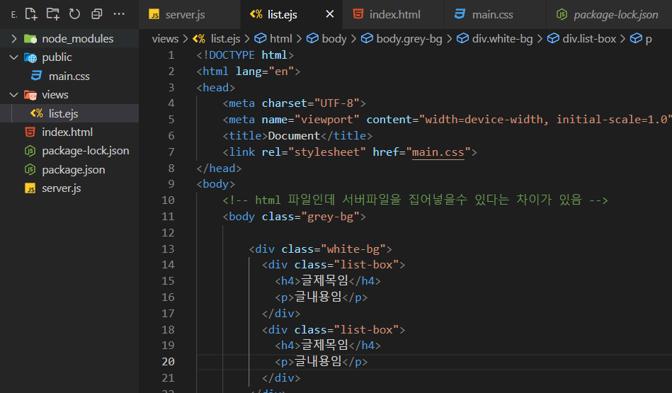 서버데이터를 ejs 파일에서 렌더링하기