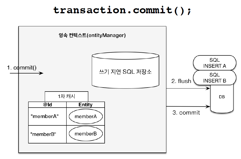//커밋하는 순간 데이터베이스에 INSERT SQL을 보냄