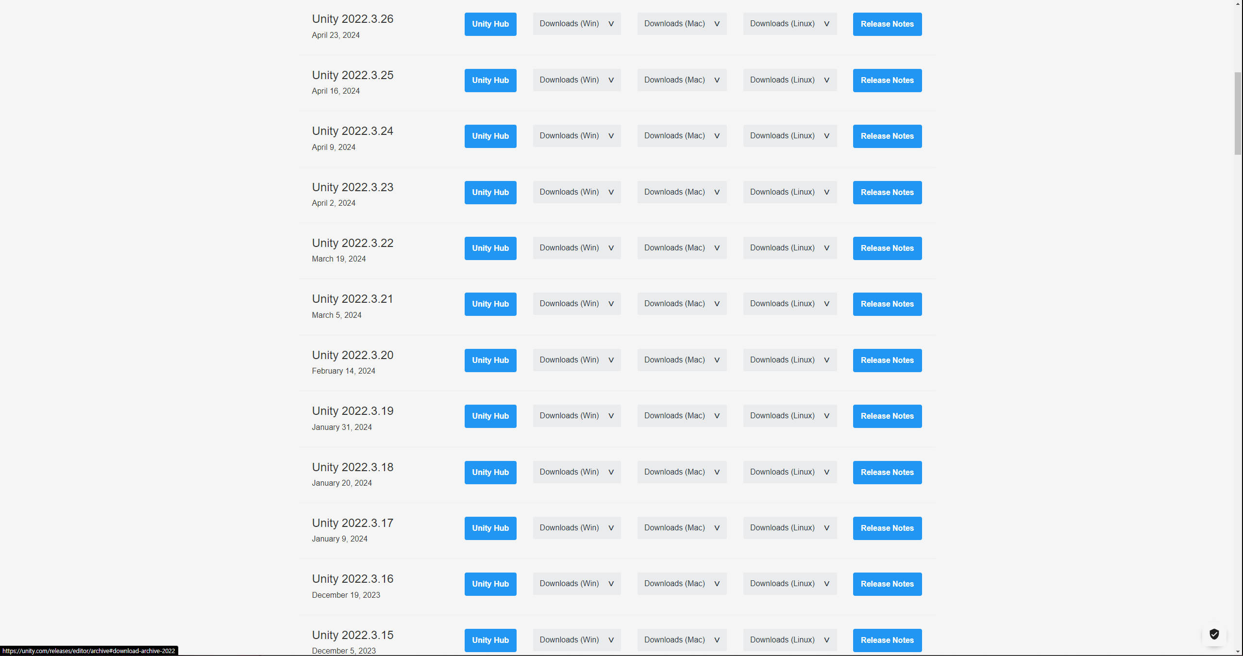 여러 버전들이 있는데 2022.3.17 Unity Hub를 누르게 되면 Unity Hub에서 다운로드가 진행된다.