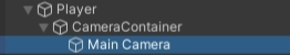 빈 오브젝트 생성한후 Player 변경하고, 하위 빈 오브젝트에 CameraContainer 생성한후에 Main Camera를 하위로 설정 하였다.
