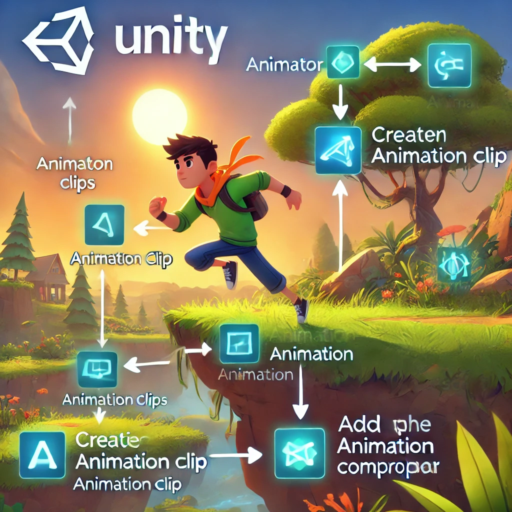 설명: 유니티의 애니메이션 시스템은 게임 오브젝트의 움직임과 상태 변화를 정의합니다.
