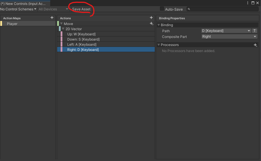 그리고 설정을 마쳤다면 위에 Save Asset을 누른다.