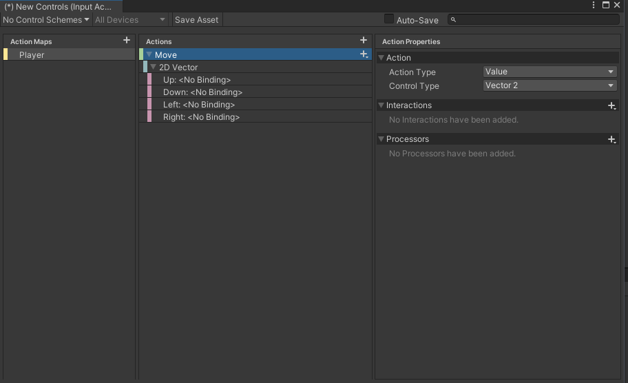 이렇게 나오는데 캐릭터의 움직임을 구현하려면 두번째에 있는 Up\Down\Left\Right를 선택한다.