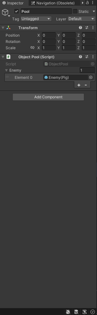 스크립트를 작성해주고 적(Enemy)프리팹을 만들어준다음 오브젝트풀 스크립트가 붙어있는 객체에 게임오브젝트 배열에 적(Enemy)프리팹을 넣어준다.