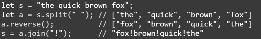 /로 둘러싸인 정규식과 함께 사용할 수도 있다.let a = s.split (/[\t]+/);join은 배열을 단일 문자열로 합쳐준다. 구획문자를 사이에 둔다.