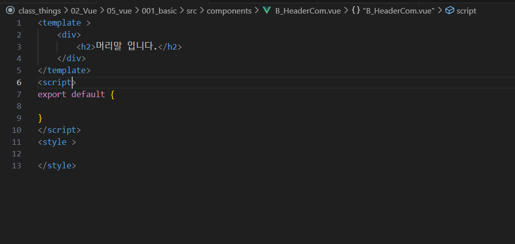 시작은 component폴더에 파일을 만들고 템플릿을 만드는 것으로한다.