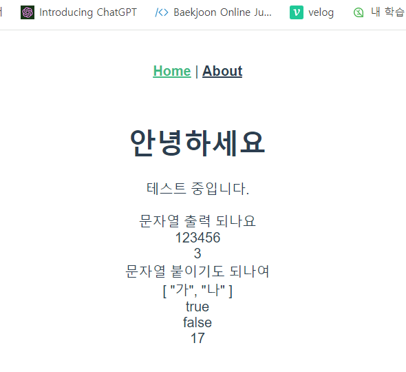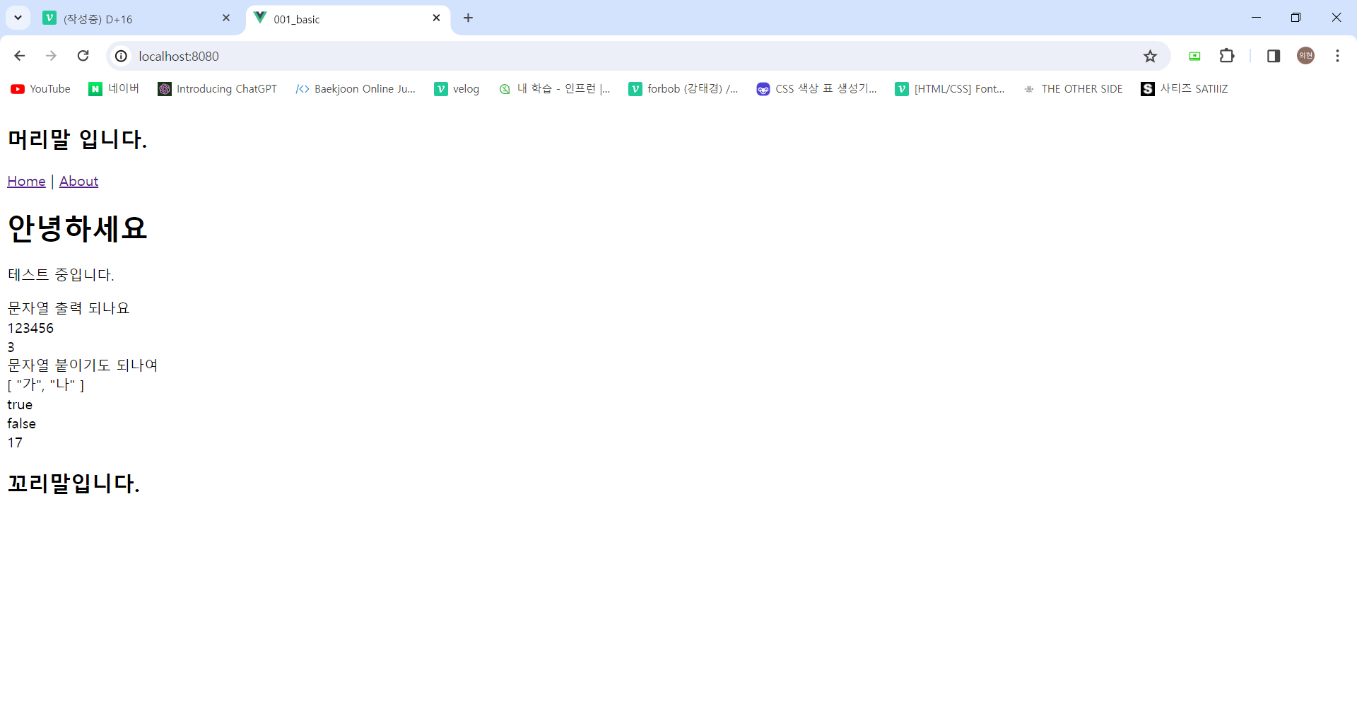 모두 잘 나온다. html에서 연산은 안되고 함수, 참 거짓도 적용되지 않지만 vue를 사용하면 이것이 가능해진다.