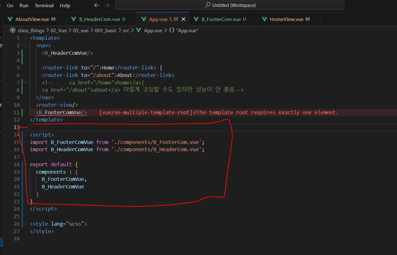 component를 넣으려면 import를 사용해서 넣어주면 된다.