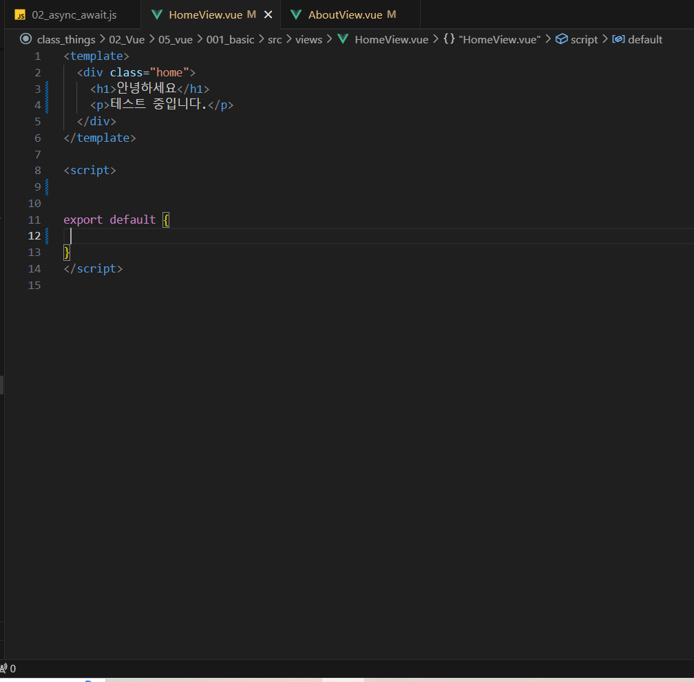 처음뜨는 화면 home vue로 vue의 첫 페이지이다.
