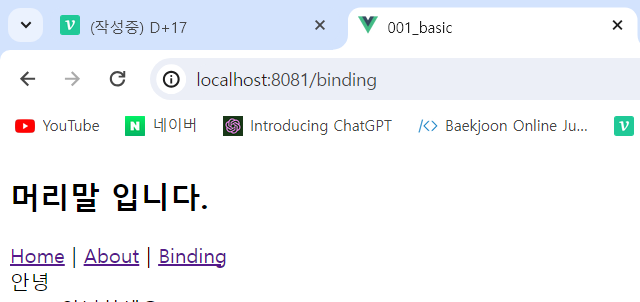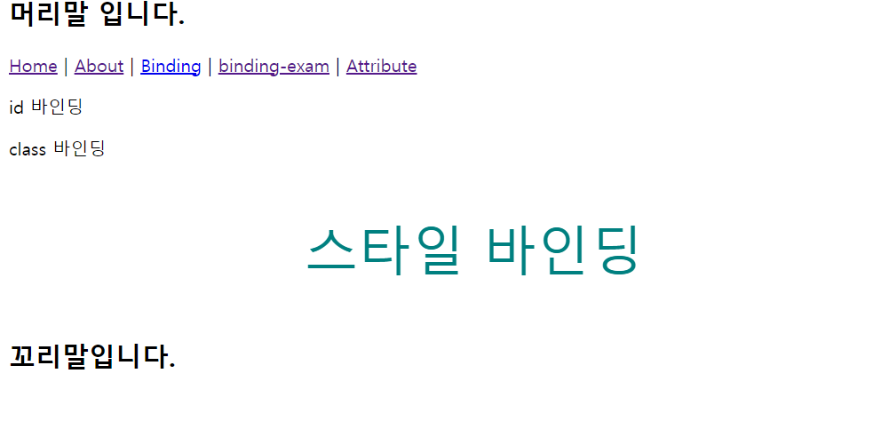 "to = "/binding""을 해주어서 BindingView.vue를 연결해주었다.