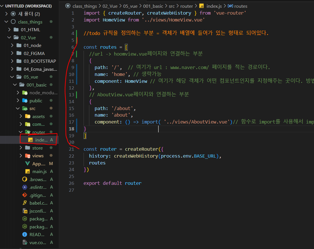 왼쪽 탭에 router폴더에 js파일에 들어가면 확인이 가능하다.