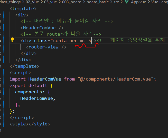 router이 출력되는 부분이 너무 넓어서 가운데 정렬을 위해 컨테이너속성을 주었다.