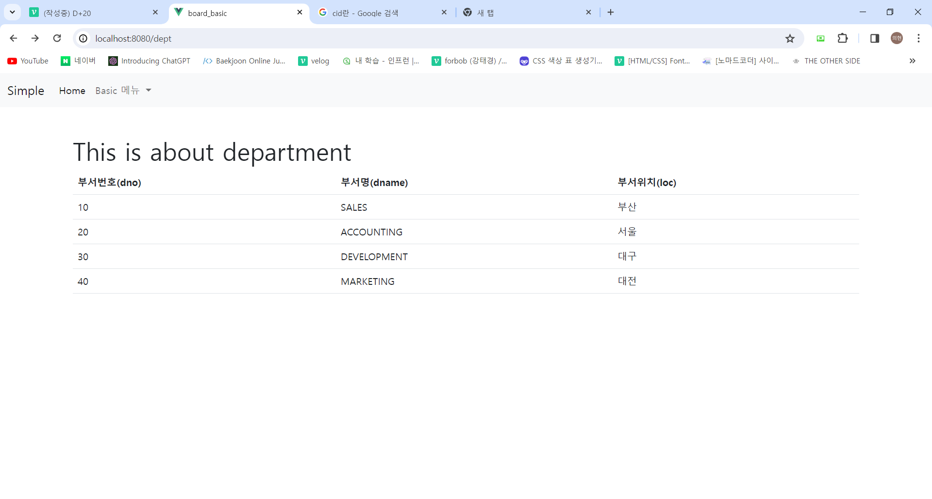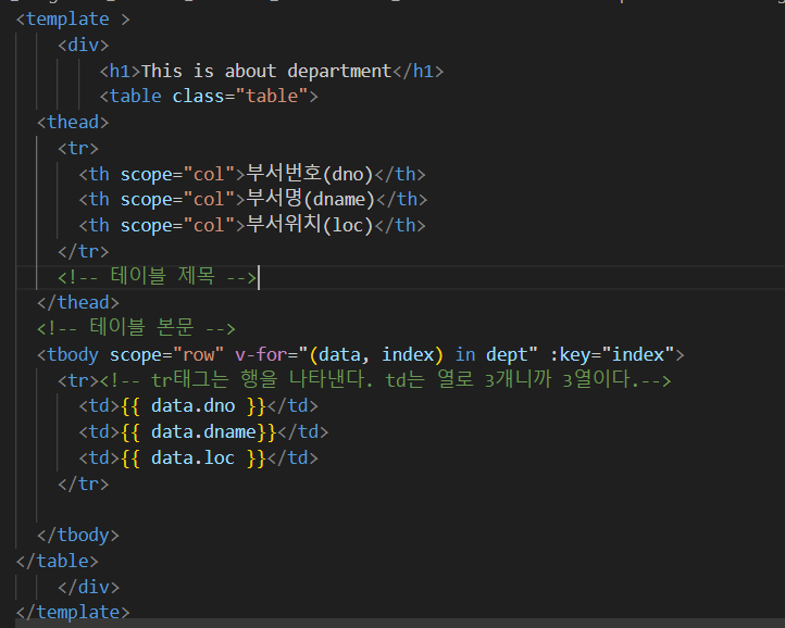 변수에 getAll함수를 넣어주고 await을 달아주었다. 그리고 작동이 안되면 에러가 나게 하기 위해 console에 json파일을 찍히게 해주었고, 정의해놓은 속성에 json파일의 dept속성을 담아주었다. 에러가 나면 error가뜨게 catch에 넣어주었다. 이것을 하나의 함수로 만들어 mounted에 넣어주면된다.