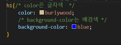 여기서 h1같은 것을 태그 선택자라고 하며 이것은 html태그, class선택자, id선택자, all선택자 등이있다.