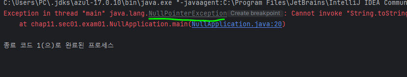 값이 널이면 함수를 실행할 수 없는데, 사용하다보니 다음과 같이 에러가 났고 밑줄친 에러를 보면 NullPointException인 것을 확인 할 수 있다.