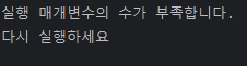 System.out.println("실행 매개변수의 수가 부족합니다.");