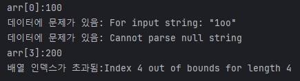 System.out.println("데이터에 문제가 있음: " + e.getMessage());