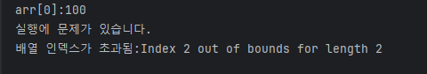 먼저 2개의 크기의 배열에 3개의 값을 넣고 ArrayIndexOutOfBoundsException을 유도하자