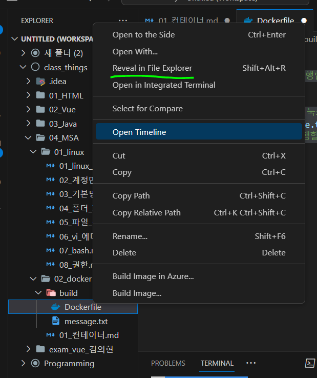이걸 누르면 경로로 바로 갈 수 있다.C:\Users\PC\Desktop\class_things\04_MSA\02_docker\build>docker build --tag hello .