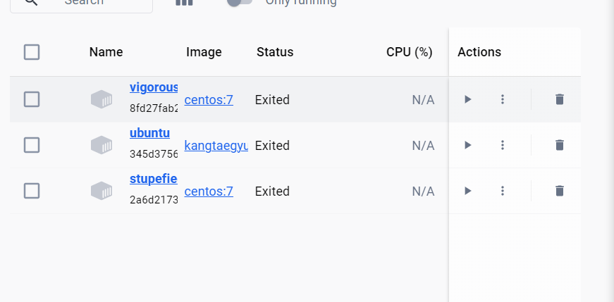 현재 실행중인 컨테이너가 없어서 목록이 없다.
