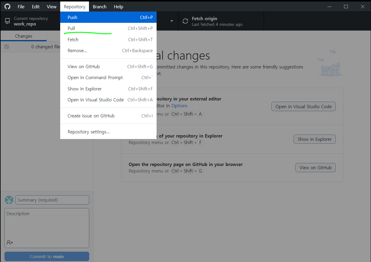 데스크탑에 Repository탭의 pull로 팀원이 올린 파일을 내려 받으면 된다.