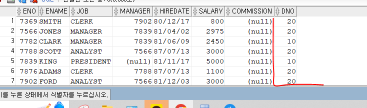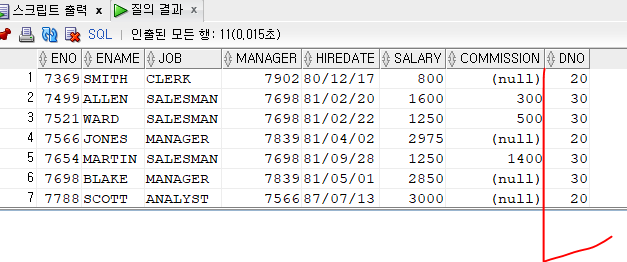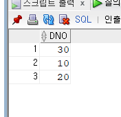 EMPLOYEE에 DNO는 중복된 값이 많이 있다. 이 값을 출력할때는 중복된 값을 없애서 출력되게 해보자